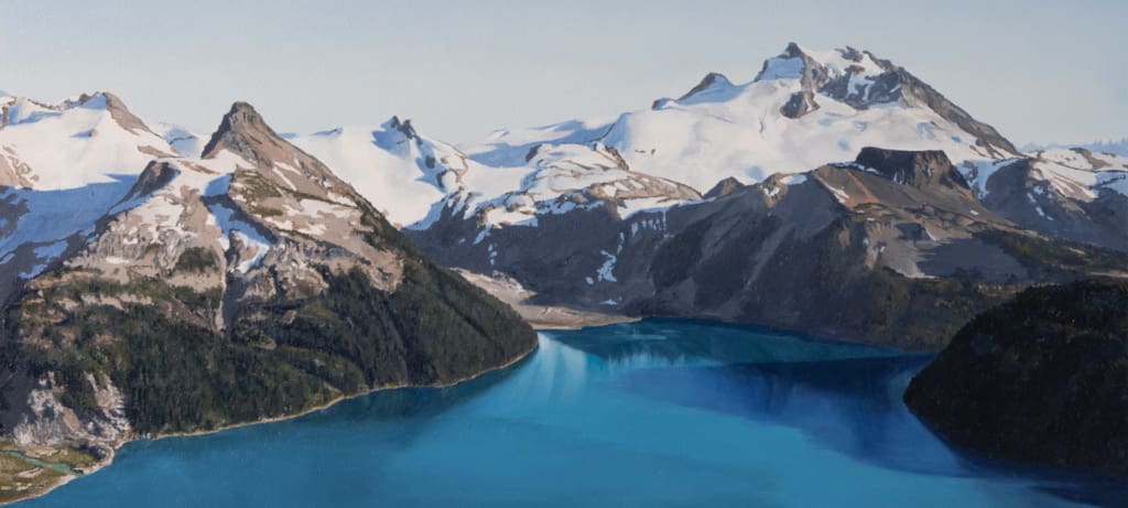 Born among the dramatic landscapes of Patagonia, Lucas Kratochwil is a third-generation painter who trained in design in Austria and travelled throughout the world before calling the west coast of Canada his home. His realist, large-scale mountain scenes are breathtaking both in scale and detail, looking at them is to feel completely immersed in the wild beauty of the unspoiled wilderness the viewer is both overwhelmed by the ambitious scale of each painting while able to appreciate the small, precise strokes of the artist’s brush.
