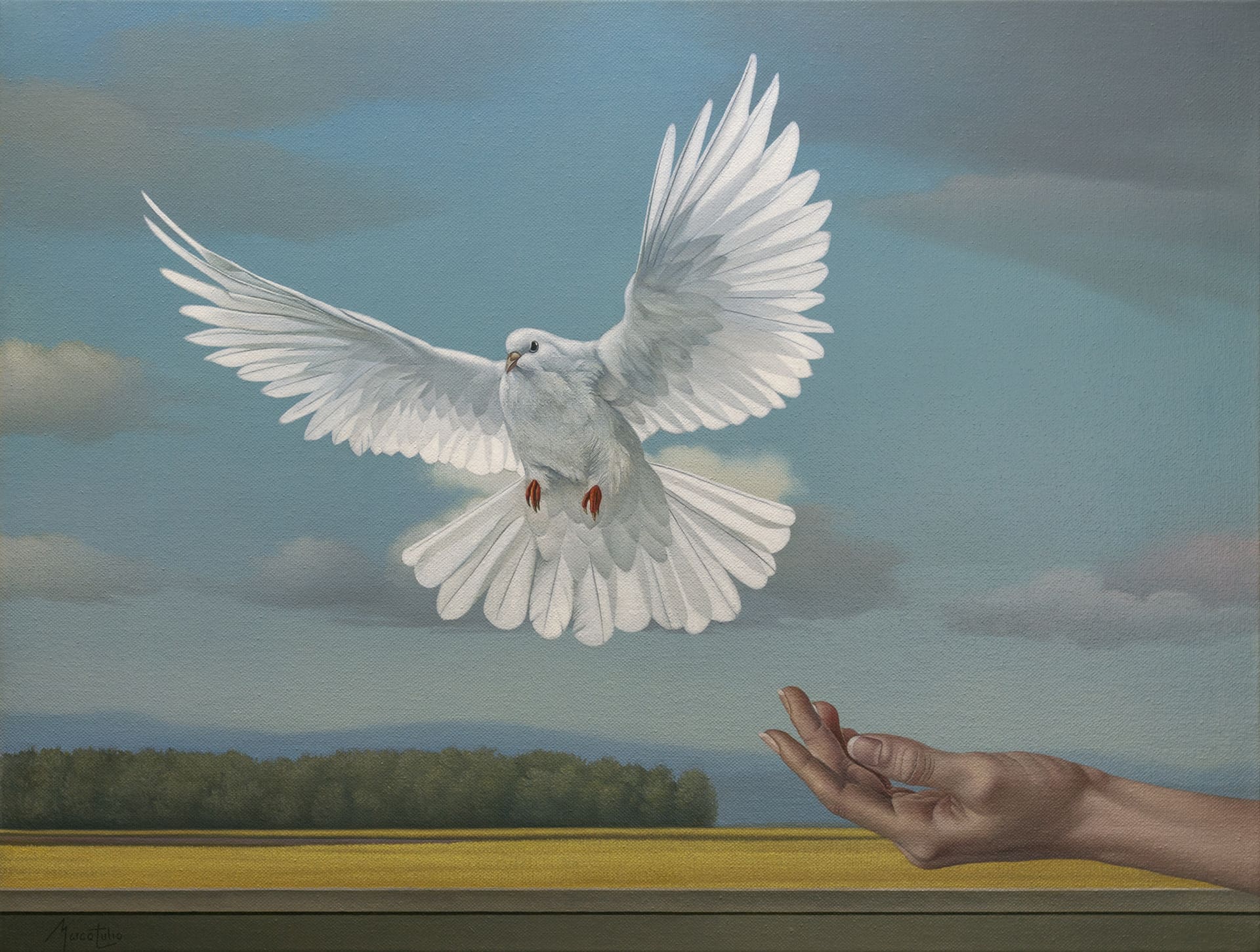 Marco Tulio expertly paints canvases in which familiar, realistic scenarios are imbued with a supernatural force, where the strange is naturalized and the normal mystified. In these pictures, he creates his unique take on magical realism in which the internal and external poetics of existence are pronounced.